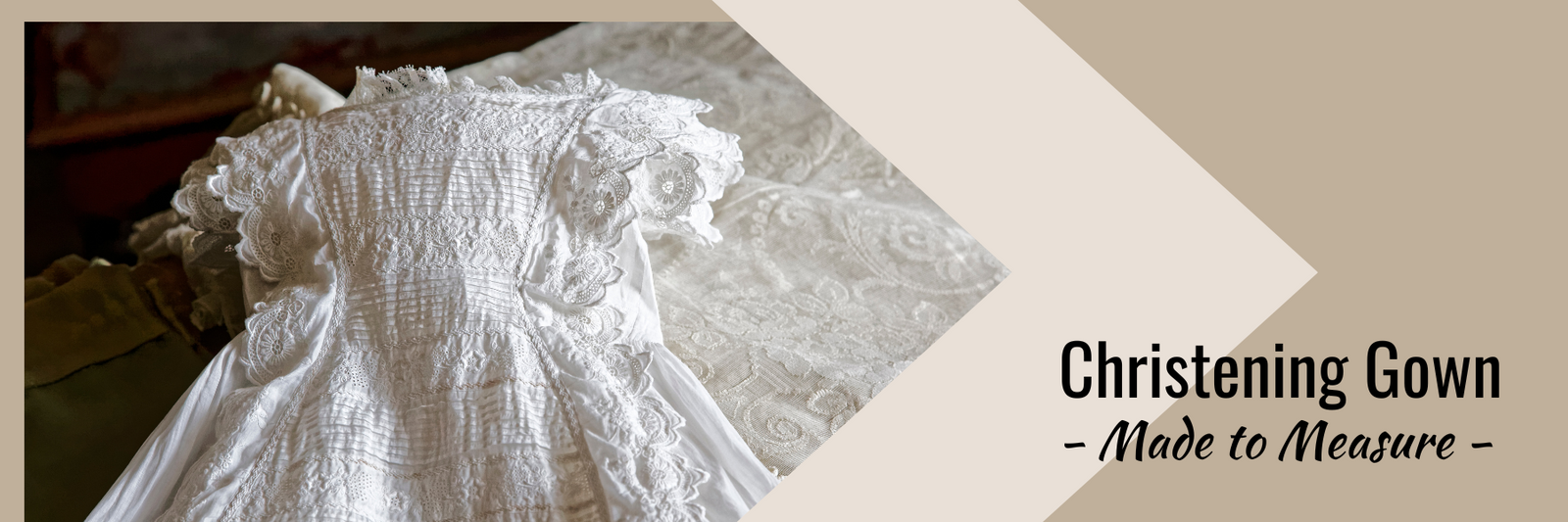 The christening gown can be made in various different styles, whether you want a traditionally long gown, ankle length, short sleeves or long sleeves, we will happily design the gown the way you imagine.