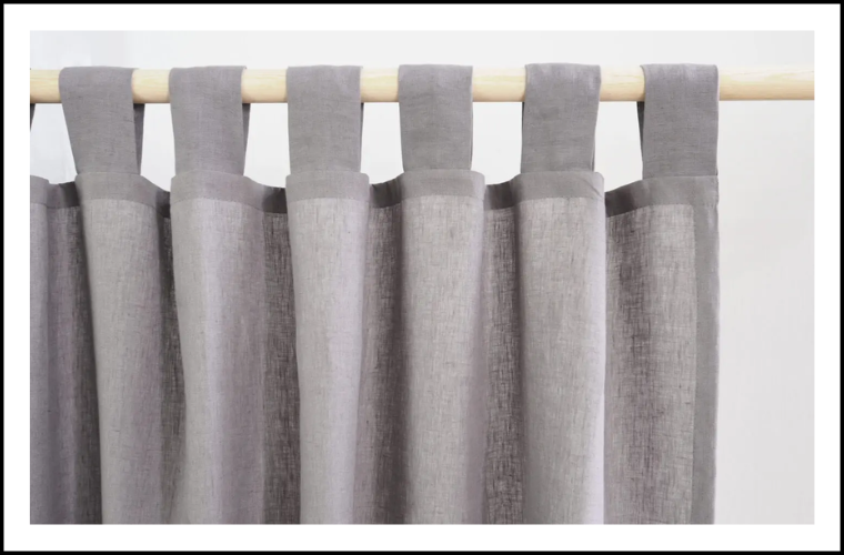 Tab top curtains feature exposed loops of fabric along the top. These wrap around the rail and support the weight of the curtain, for a vintage feel. They are easy to hang on the curtain pole or the rod.
