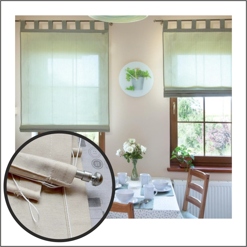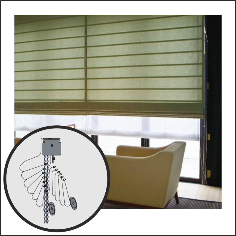 A Roman shade can be raised and lowered with 4 types of manually controls.